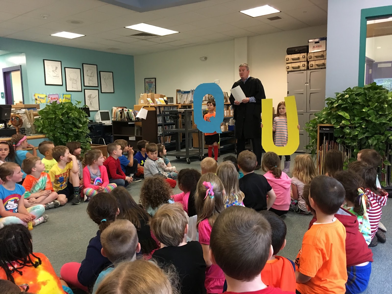 Finally the big day arrived! All of the Kindergarten classes were in attendance as Mr. Dearborn performed the very special ceremony. Congratulations 'Q' and 'U'!